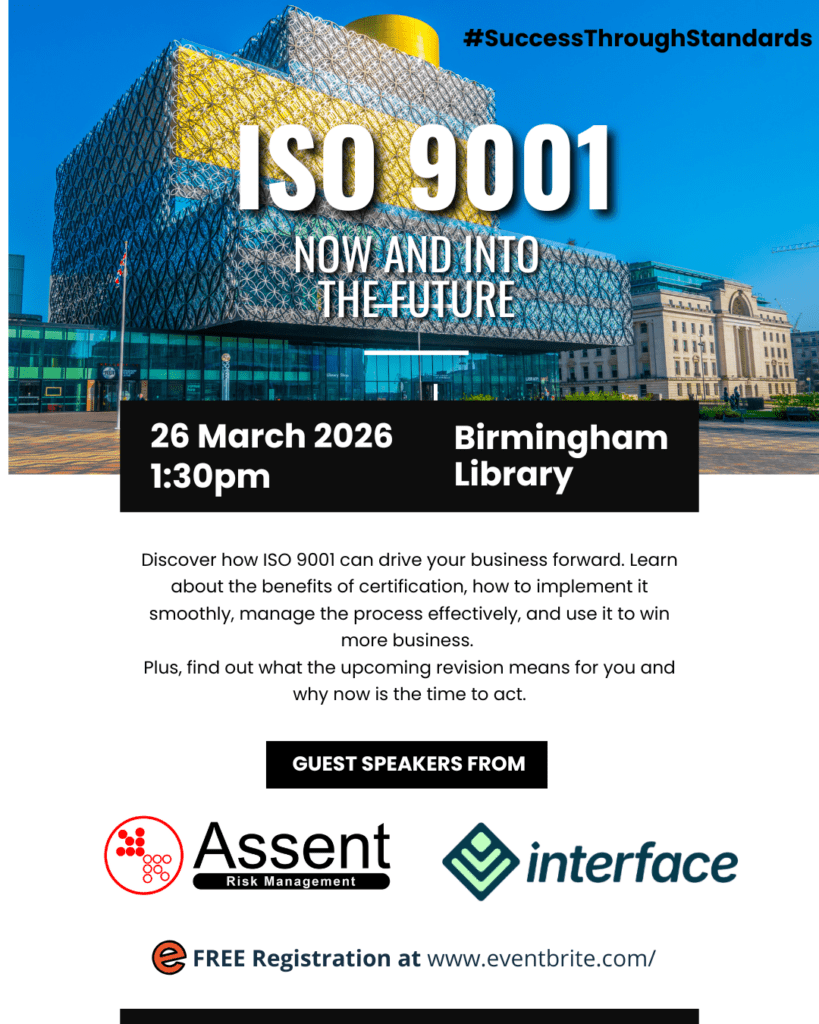 Assent Risk Management is hosting a free, in-person event at Birmingham Library to explore ISO 9001: Now and into the Future. This practical session is designed for quality managers, compliance officers, and business owners who want to understand the benefits of ISO 9001, implement it effectively, and stay ahead of the upcoming revision.